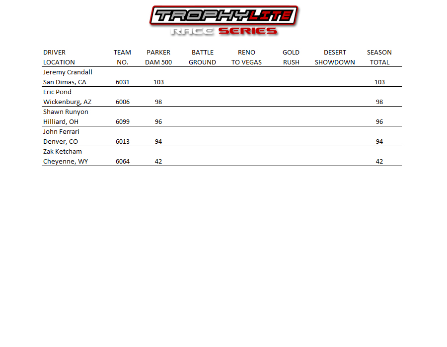2026 TrophyLite Race Series Points